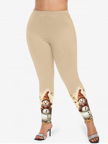 Plus Size Christmas Ball Flowers Snowman Print Leggings - Apricot - 2x