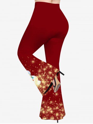 Bottoms > Plus Size Christmas Ball Hat Snowman Glitter Print Flare Pants