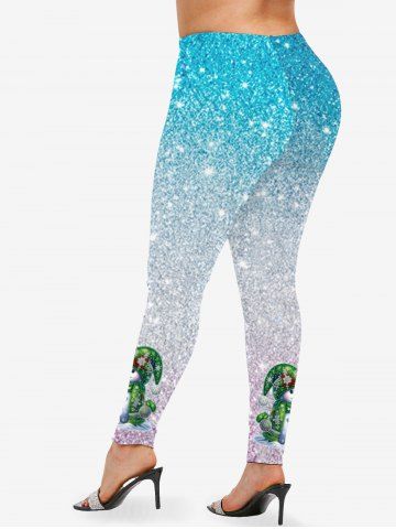 Plus Size Christmas Ball Snowman Snowflake Sparkling Sequin 3D Print Leggings - Multi-a - 1x