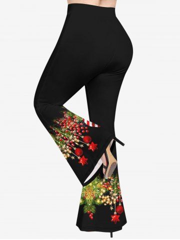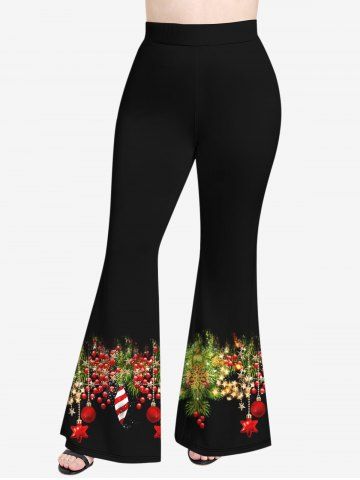 Plus Size Christmas Ball Stars Leaf Print Flare Pants - Black - 5x