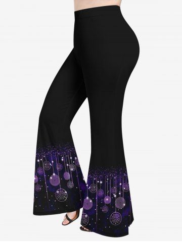 Plus Size Christmas Ball Tassel Sparkling Sequin Glitter 3D Print Flare Disco Pants - Concord - Xs