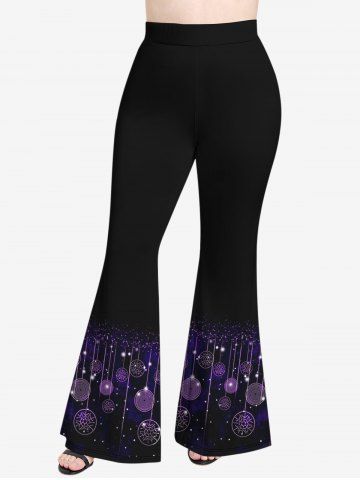 Plus Size Christmas Ball Tassel Sparkling Sequin Glitter 3D Print Flare Disco Pants - Concord - 6x