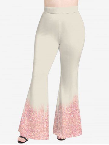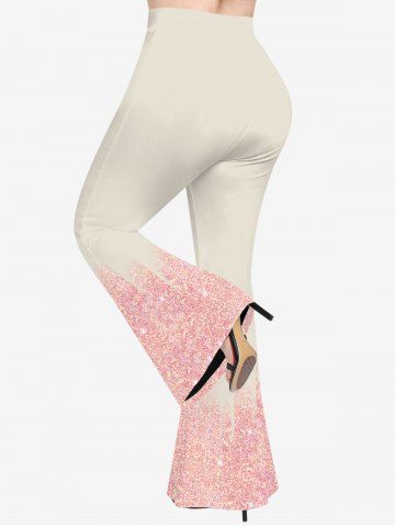 Plus Size Christmas Colorblock Glitter Sparkling Sequin 3D Print Flare Disco Pants - Light Pink - L