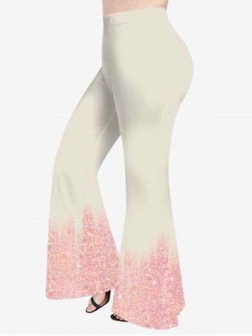 Plus Size Christmas Colorblock Glitter Sparkling Sequin 3D Print Flare Disco Pants - Light Pink - 4x
