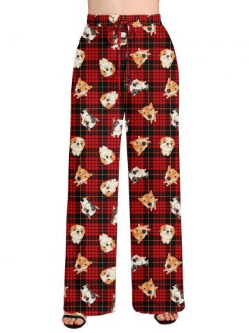 Plus Size Christmas Cute Dog Plaid Print Drawstring Wide Leg Pants - Red - 6x