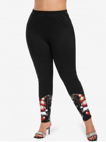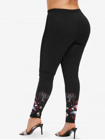 Plus Size Christmas Elf Ball Heart Swing Colorful Feather Print Leggings - Black - 2x