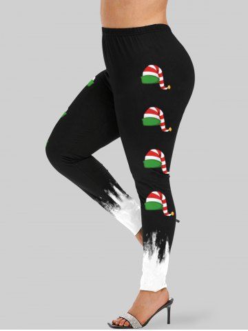 Plus Size Christmas Elf Hat Colorblock Print Leggings - Black - Xs