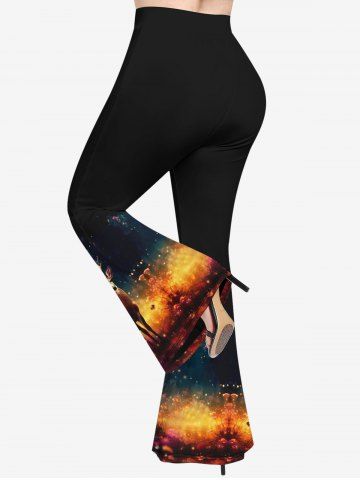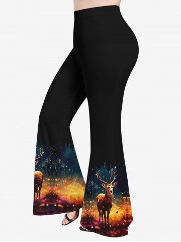 Bottoms > Plus Size Christmas Elk Flower Glitter Print Flare Pants