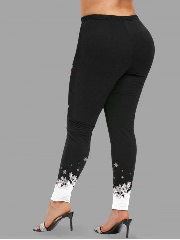 Plus Size Christmas Flamingo Snowflake Print Leggings - Black - L