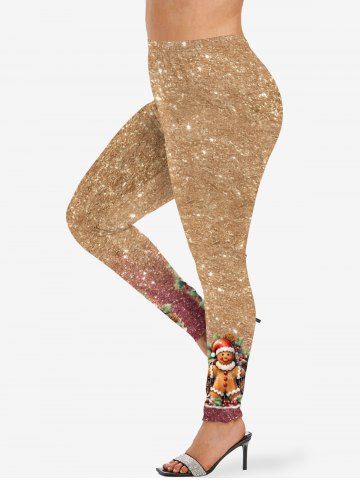 Plus Size Christmas Gingerbread Holy Fruit Leaf Sparkling Sequin 3D Print Leggings - Light Coffee - 6x