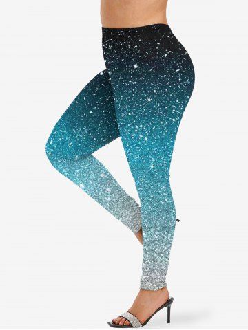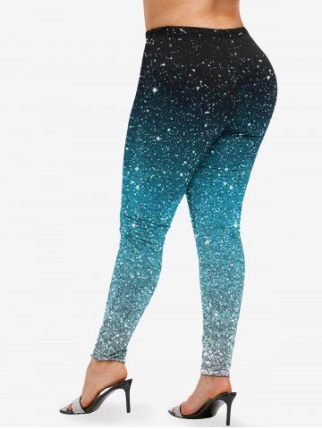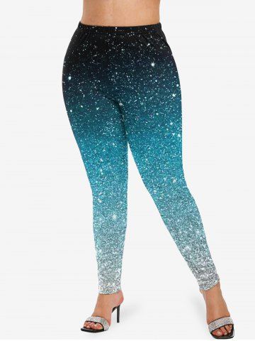 Bottoms > Plus Size Christmas Glitter Ombre Galaxy Print Skinny Leggings