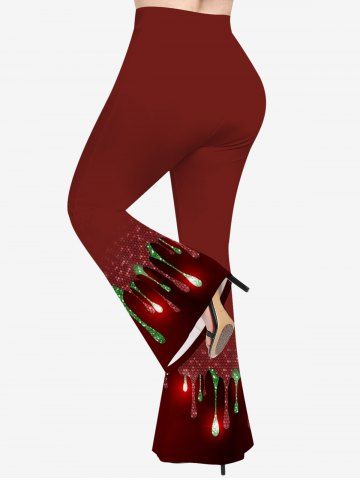 Plus Size Christmas Glitter Sparkling Paint Drop Sequins Print Flare Pants - Red - 4x