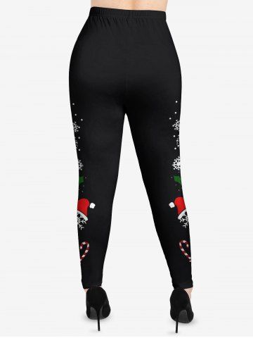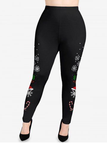 Plus Size Christmas Hat Candy Fruit Snowman Snowflake Print Leggings - Black - 6x