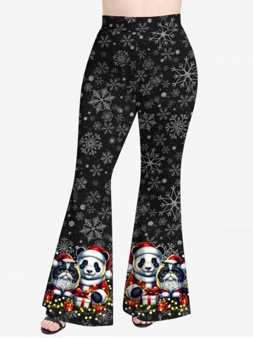 Plus Size Christmas Hat Light Panda Cat Snowflake Glitter 3D Print Flare Pants - Black - 1x