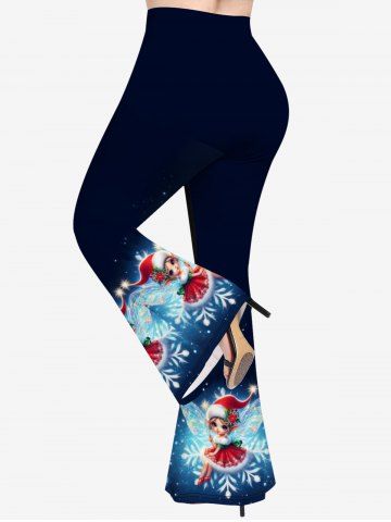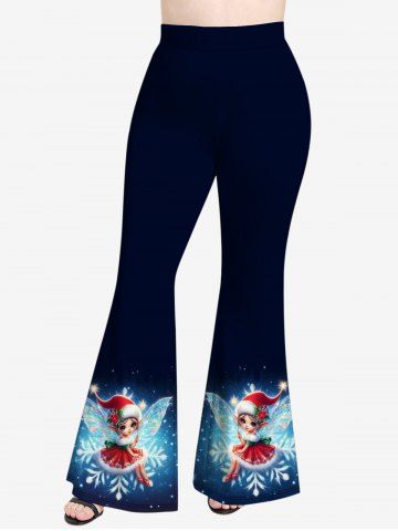 Bottoms > Plus Size Christmas Hat Snowflake Elf Glitter Ombre Galaxy Print Flare Pants