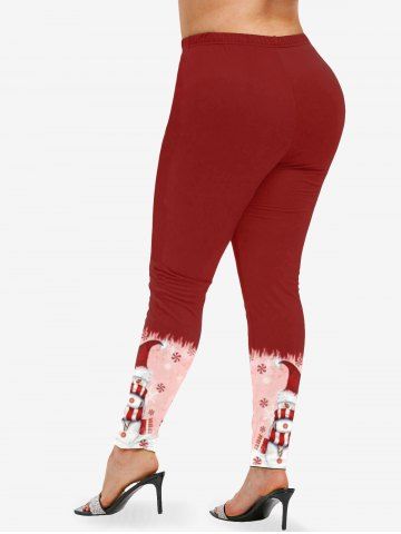 Plus Size Christmas Hat Snowman Candy Letters Print Leggings - Red - 2x