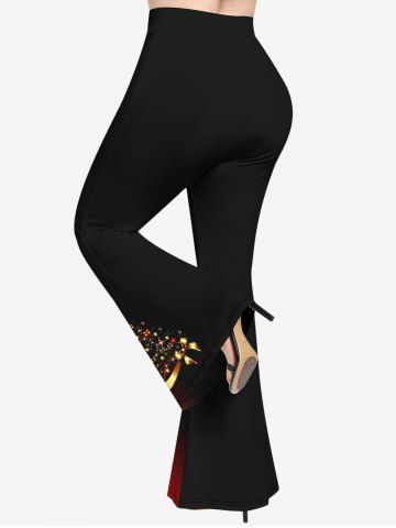 Plus Size Christmas Hat Tree Light Glitter 3D Print Flare Pants - Black - 1x
