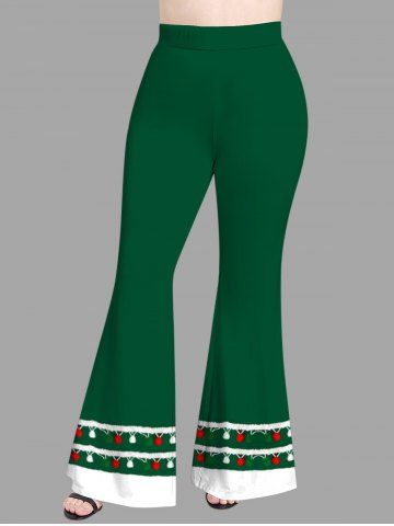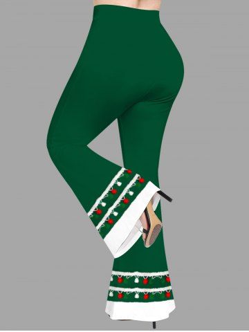Plus Size Christmas Light Print Flare Pants - Green - 2x
