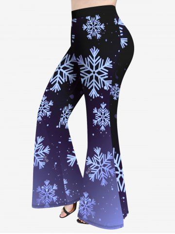 Plus Size Christmas Ombre Snowflake Print Flare Pants - Black - 4x