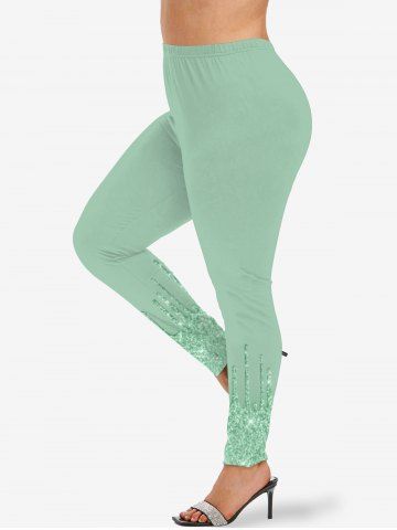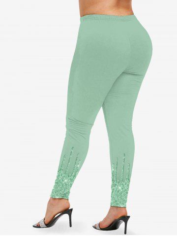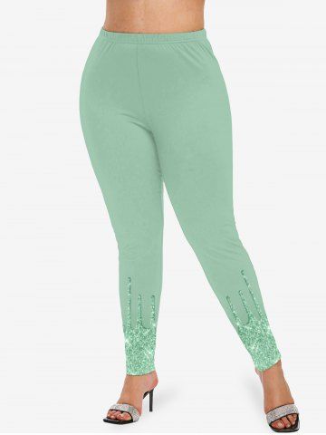 Plus Size Christmas Paint Drop Sparkling Sequin 3D Print Leggings - Green - 1x