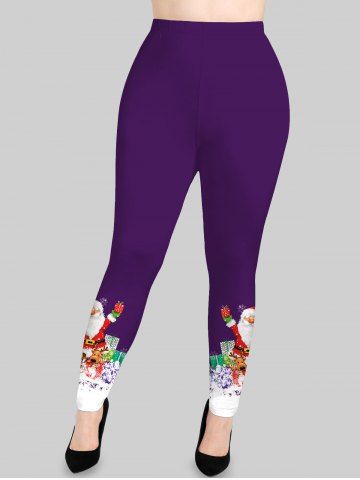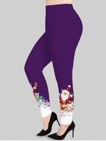 Plus Size Christmas Santa Claus Bear Dog Elk Snowflake Colorblock Print Leggings - Purple - 6x