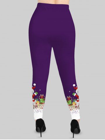 Plus Size Christmas Santa Claus Bear Dog Elk Snowflake Colorblock Print Leggings - Purple - S