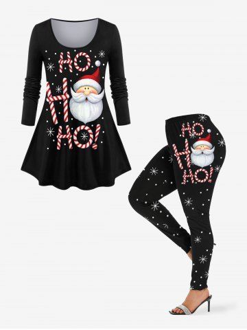 Plus Size Christmas Santa Claus Candy Snowflake Print Leggings - Black - 4x