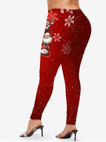 Plus Size Christmas Santa Claus Snowman Snowflake Elk Print Leggings - Red - 2x
