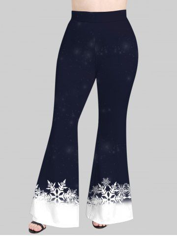 Bottoms > Plus Size Christmas Snowflake Colorblock Print Flare Pants