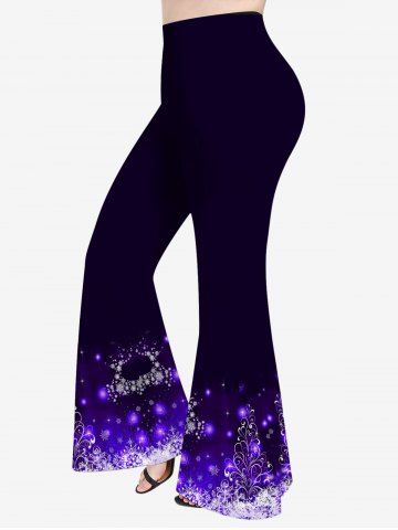 Bottoms > Plus Size Christmas Snowflake Curve Glitter Stars Print Ombre Flare Pants