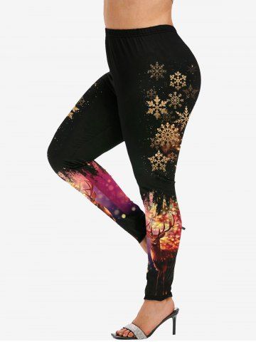 Bottoms > Plus Size Christmas Snowflake Elk Sparkling Sequin Glitter 3D Print Leggings