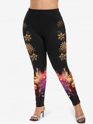 Plus Size Christmas Snowflake Elk Sparkling Sequin Glitter 3D Print Leggings - Multi-a - S