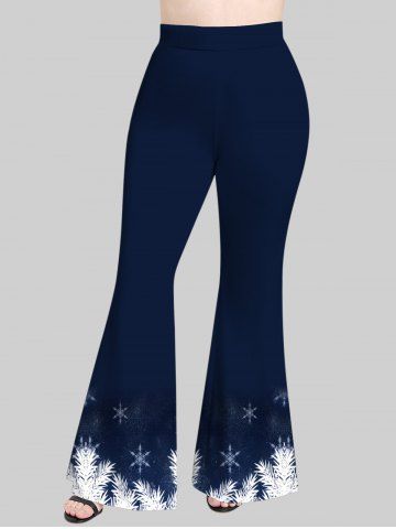 Bottoms > Plus Size Christmas Snowflake Galaxy Leaf Print Flare Pants