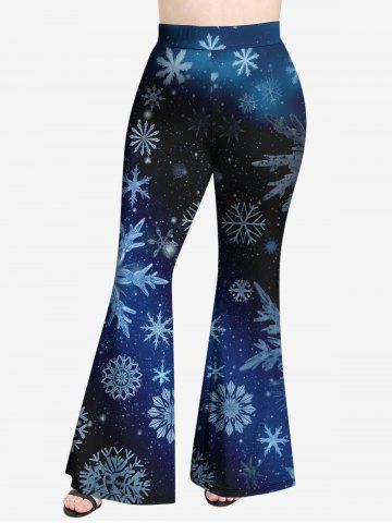 Bottoms > Plus Size Christmas Snowflake Galaxy Print Flare Pants