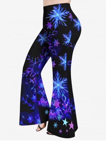 Bottoms > Plus Size Christmas Snowflake Galaxy Print Flare Pants