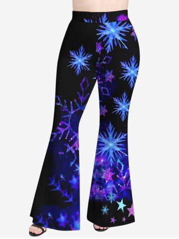 Bottoms > Plus Size Christmas Snowflake Galaxy Print Flare Pants