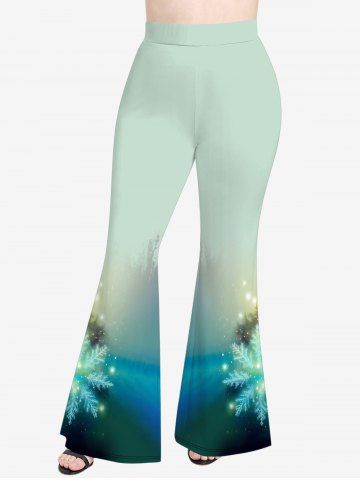 Plus Size Christmas Snowflake Galaxy Star Glitter 3D Print Flare Pants - Green - 1x