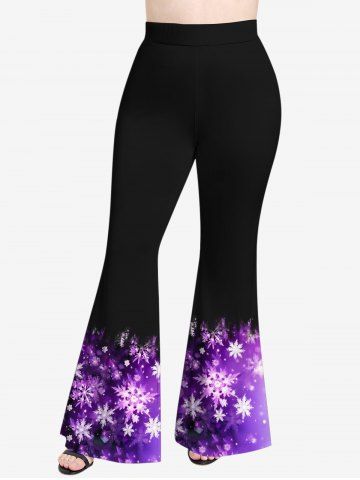 Plus Size Christmas Snowflake Glitter 3D Print Flare Pants - Black - 4x