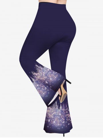 Plus Size Christmas Snowflake Glitter 3D Print Flare Pants - Concord - 1x
