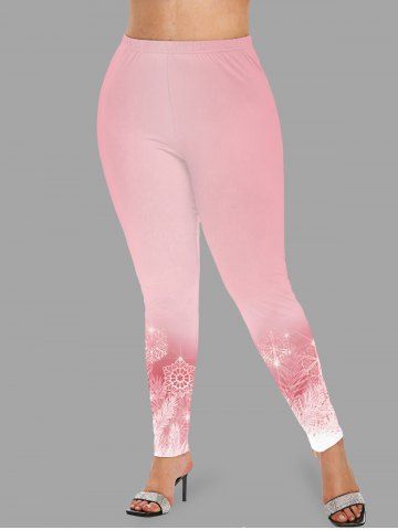 Plus Size Christmas Snowflake Leaf Print Leggings - Light Pink - Xs