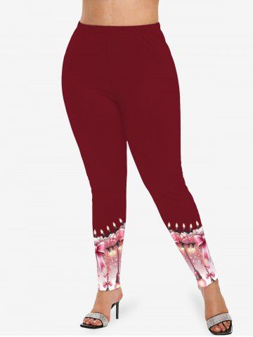 Plus Size Christmas Snowflake Light Bowknot Print Ombre Leggings - Red - 6x