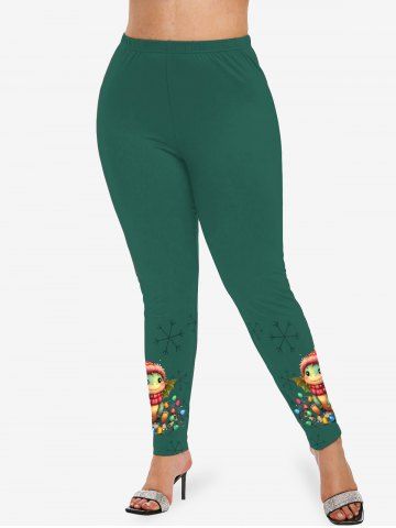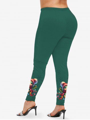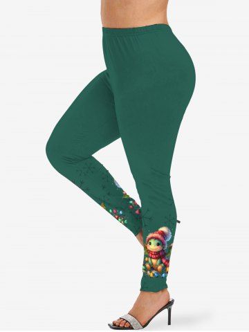 Plus Size Christmas Snowflake Light Cute Dinosaur Print Leggings - Green - 1x