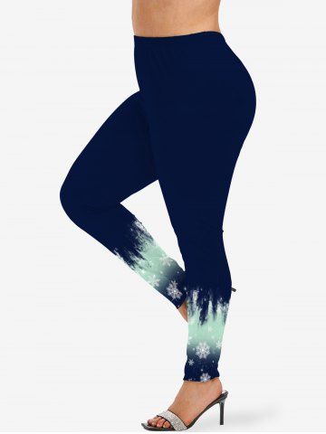 Plus Size Christmas Snowflake Ombre Colorblock Print Leggings - Midnight Blue - Xs