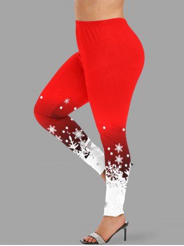 Plus Size Christmas Snowflake Ombre Colorblock Print Leggings - Red - 6x