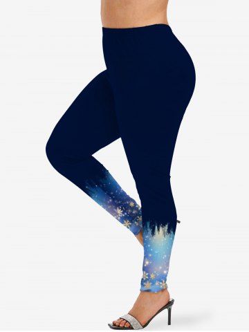 Plus Size Christmas Snowflake Ombre Galaxy Glitter 3D Print Leggings - Deep Blue - 6x