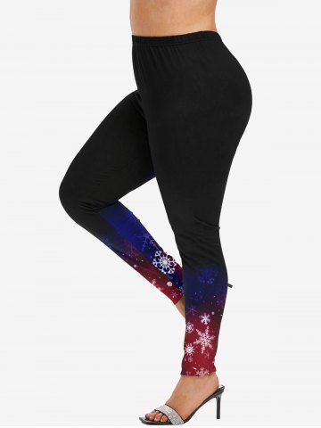 Plus Size Christmas Snowflake Ombre Galaxy Print Leggings - Black - L
