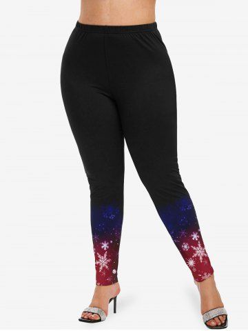 Plus Size Christmas Snowflake Ombre Galaxy Print Leggings - Black - 1x