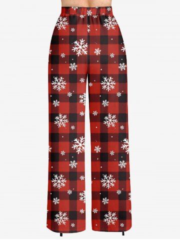 Plus Size Christmas Snowflake Plaid Print Drawstring Wide Leg Pants - Deep Red - 4x