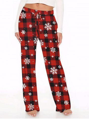 Bottoms > Plus Size Christmas Snowflake Plaid Print Drawstring Wide Leg Pants