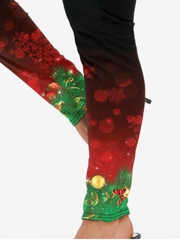 Plus Size Christmas Snowflake Printed Ombre Skinny Leggings - Red - L | Us 12